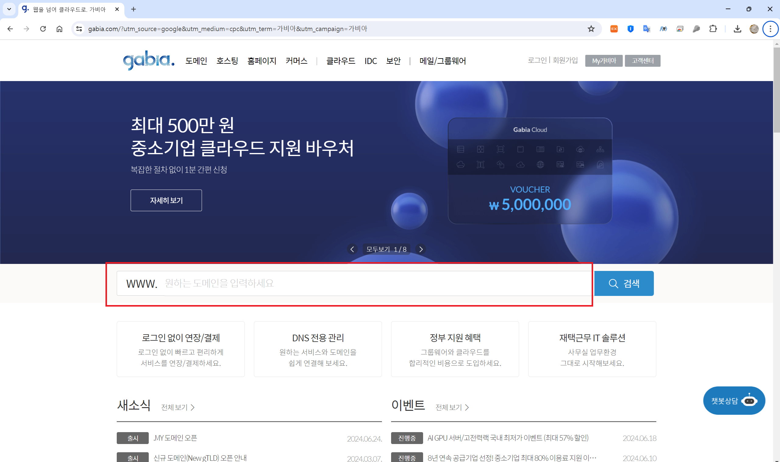 먼저 가비아 메인 페이지에 접속하면, 아래와 같은 페이지가 나타난다.