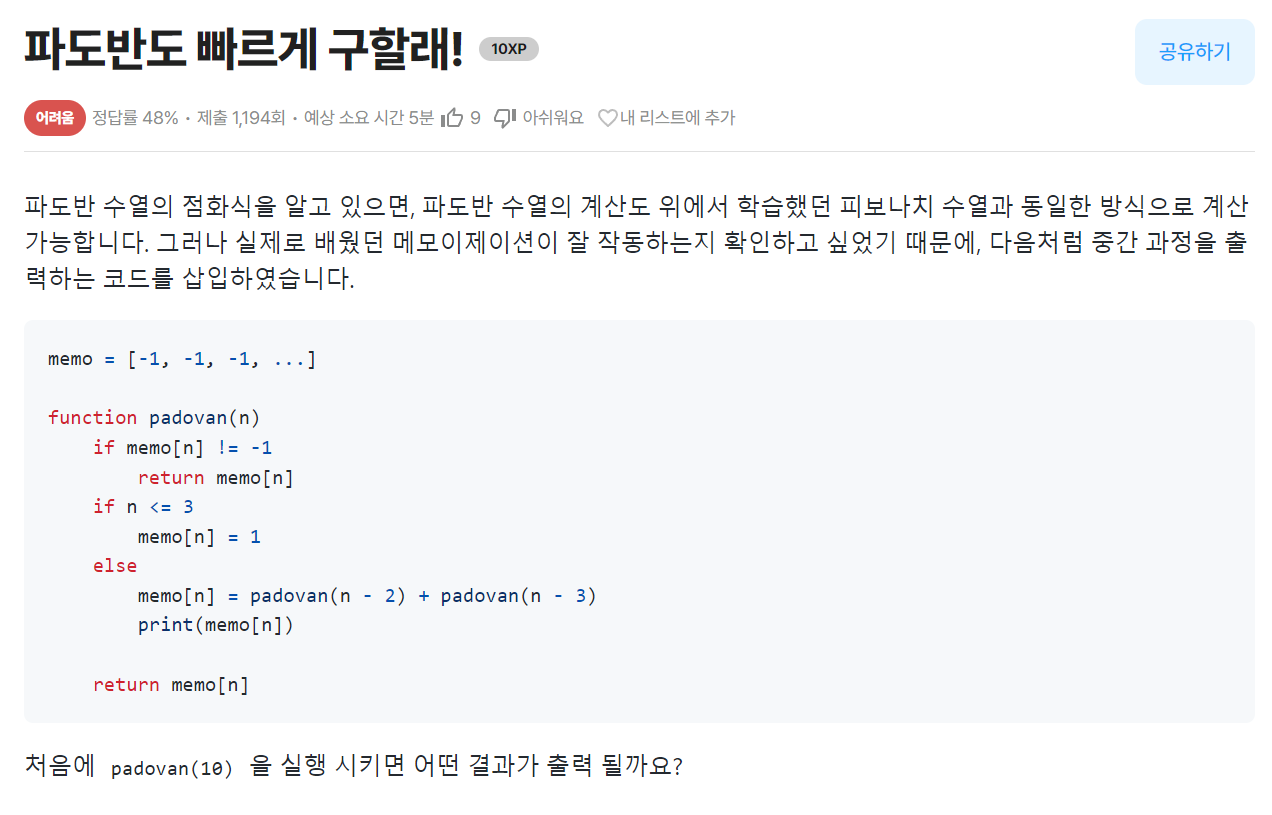 memo[n] = padovan(n - 2) + padovan(n - 3)