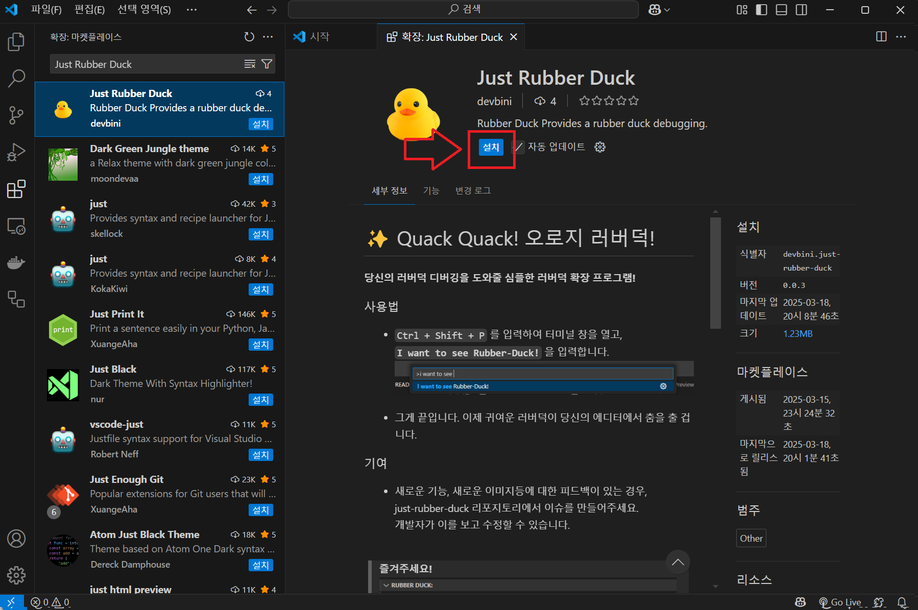 아니면 "Install"이라 되어 있는 버튼을 눌러주면 끝입니다!