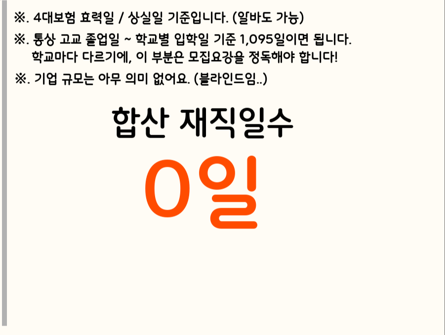 - 지원 조건 중 재직일수에 관한 정보와 졸업학점, 면접 여부가 표시됩니다