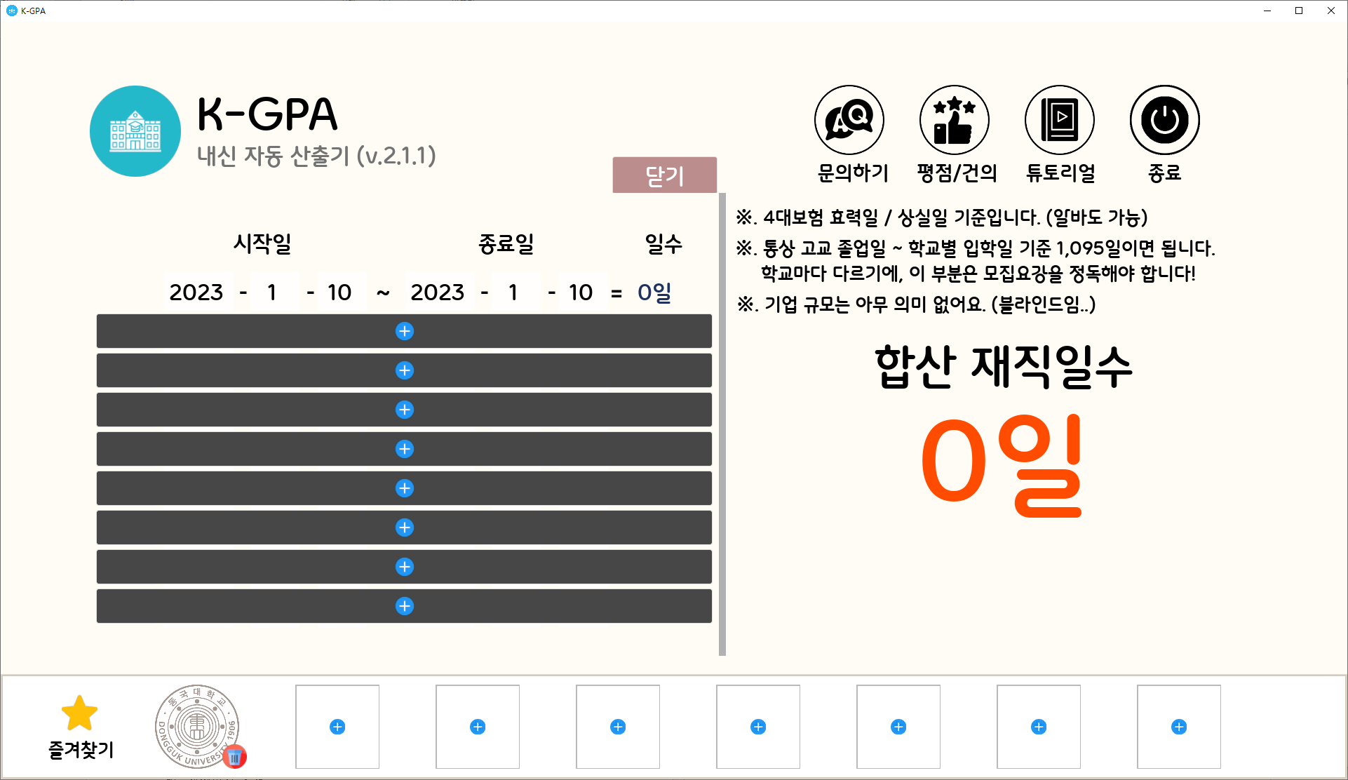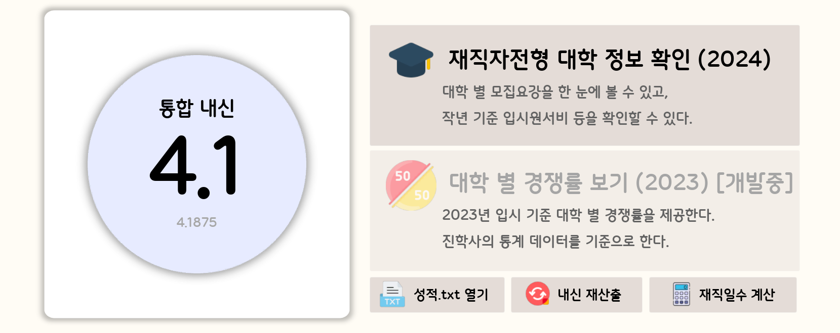 입시에 필요한 정보와 재직 기간을 함께 산정할 수 있는, 그런 유틸 요소가 많이 추가 된 프로그램입니다.