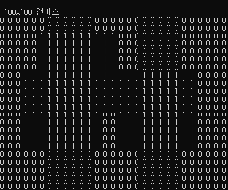 100x100의 캔버스를 2차원 배열로 만들었고, 색종이가 올라간 부분을 특정한 뒤 개수를 구하는 방법을 사용했죠.